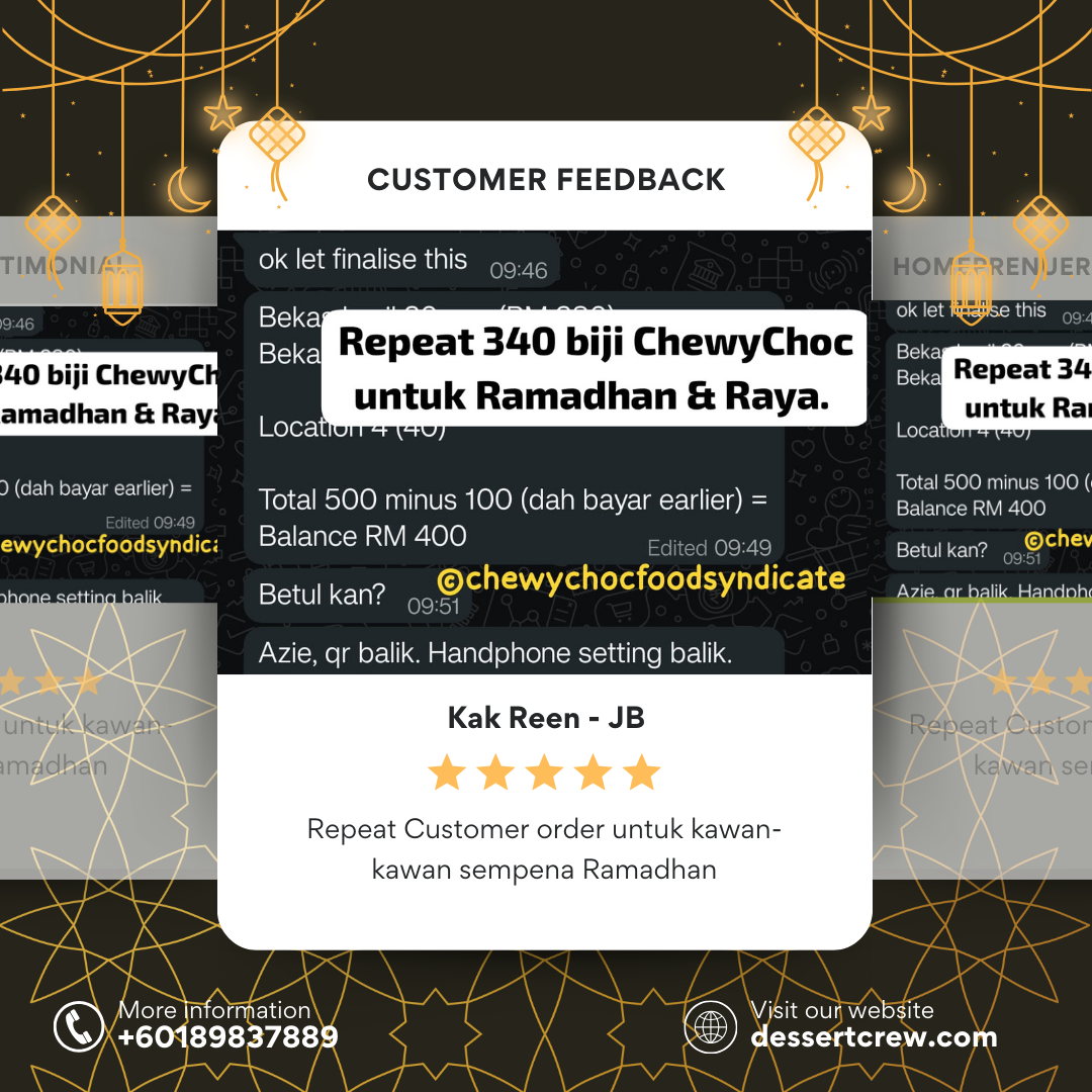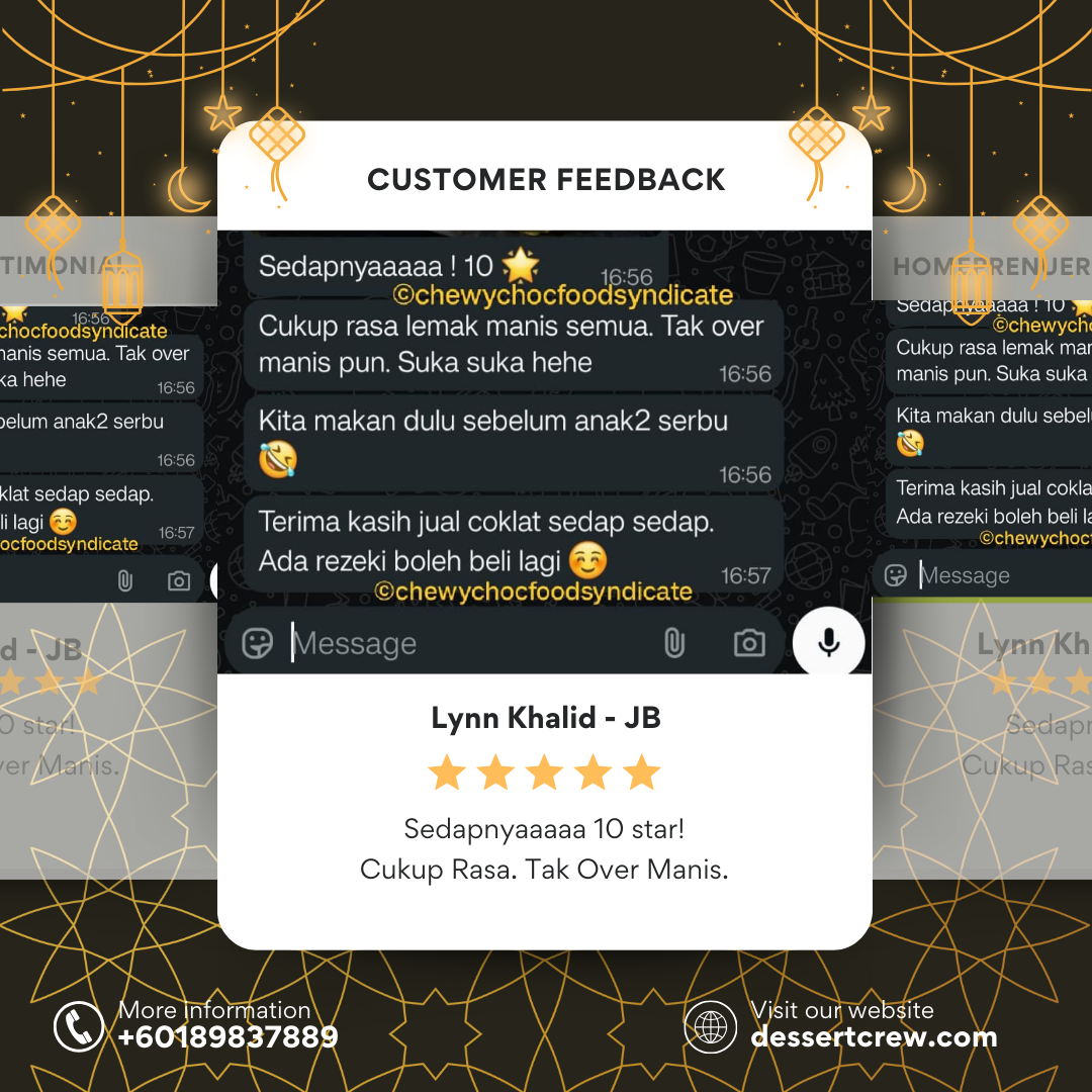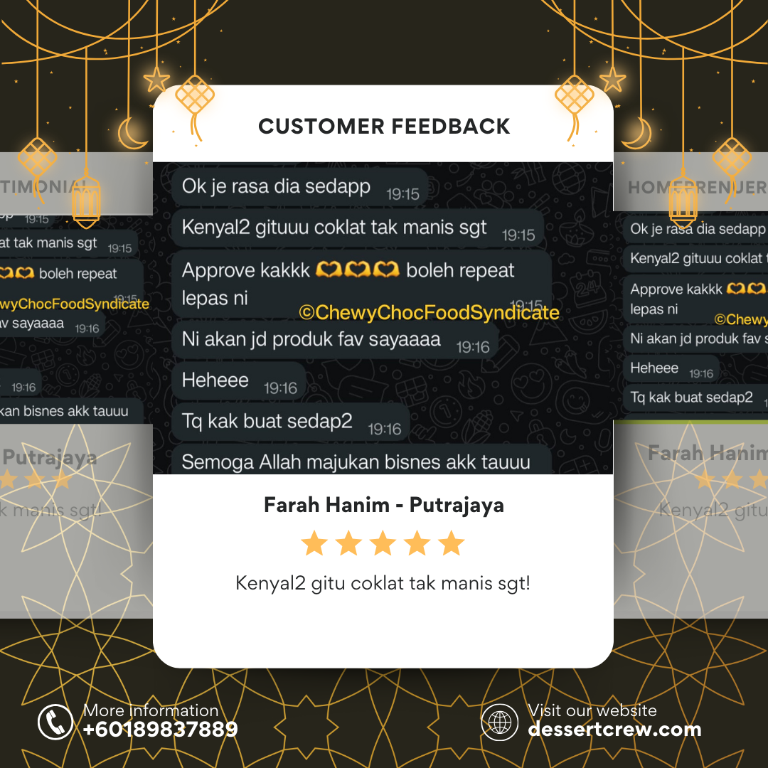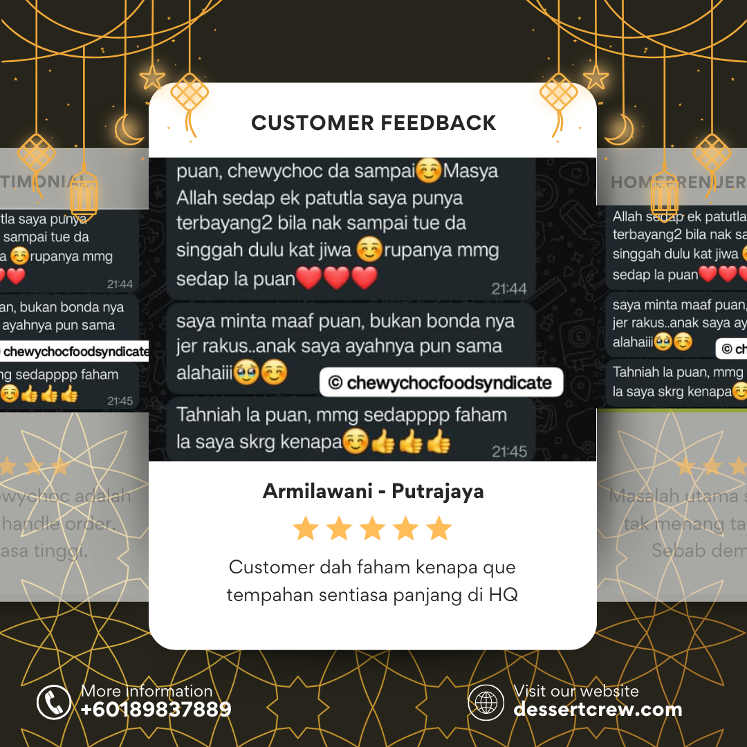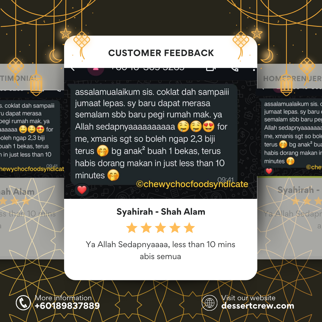 Scroll untuk tengok pengalaman pelanggan coklat kami :