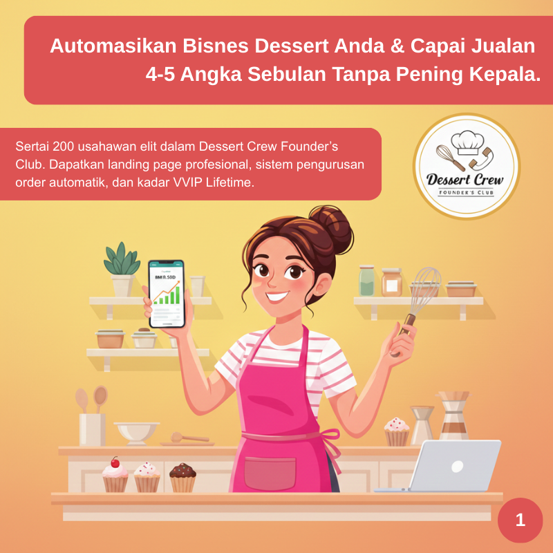 Di sini, kami di Dessert Crew sudah berjaya membangunkan satu ekosistem automasi yang membolehkan sesiapa yang sertai, fokus kepada menjual dan biar sistem kami pastikan setiap tempahan korang direkod dengan tepat dan sistematik. Tiada lagi 'tempahan terlepas pandang' atau 'tersalah hantar order'.