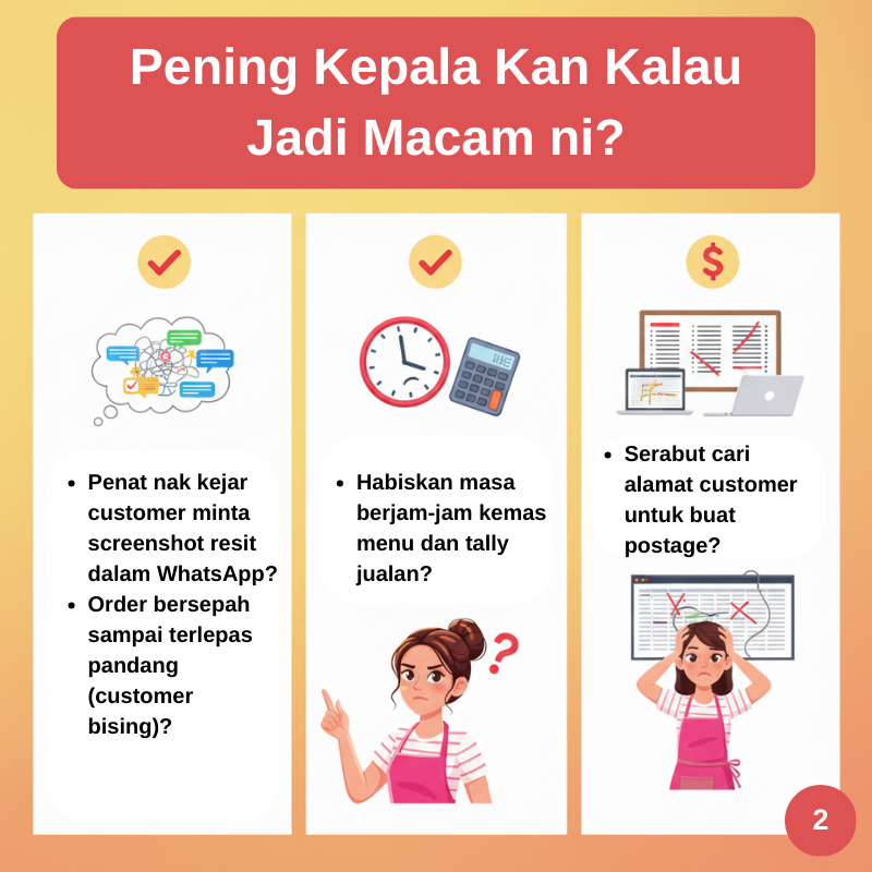 Belum lagi fikir nak buat delivery, isi nama pelanggan untuk dihantar melalui kurier. Bila order dah mula rancak, sellers akan mula rasa tertekan.