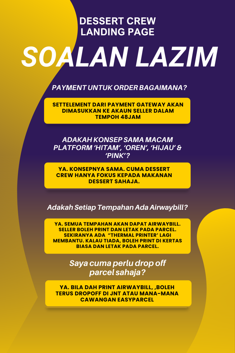Jadi korang fokus pada menghasilkan dessert/cookies/makanan yang SEDAP-SEDAP untuk pelanggan tersayang korang.