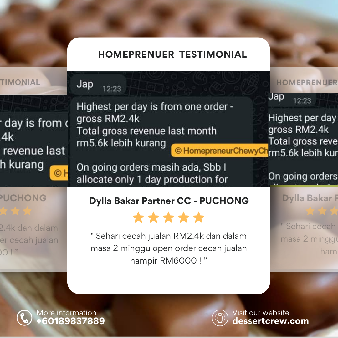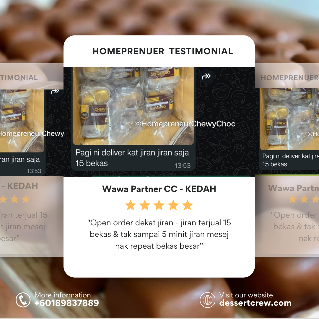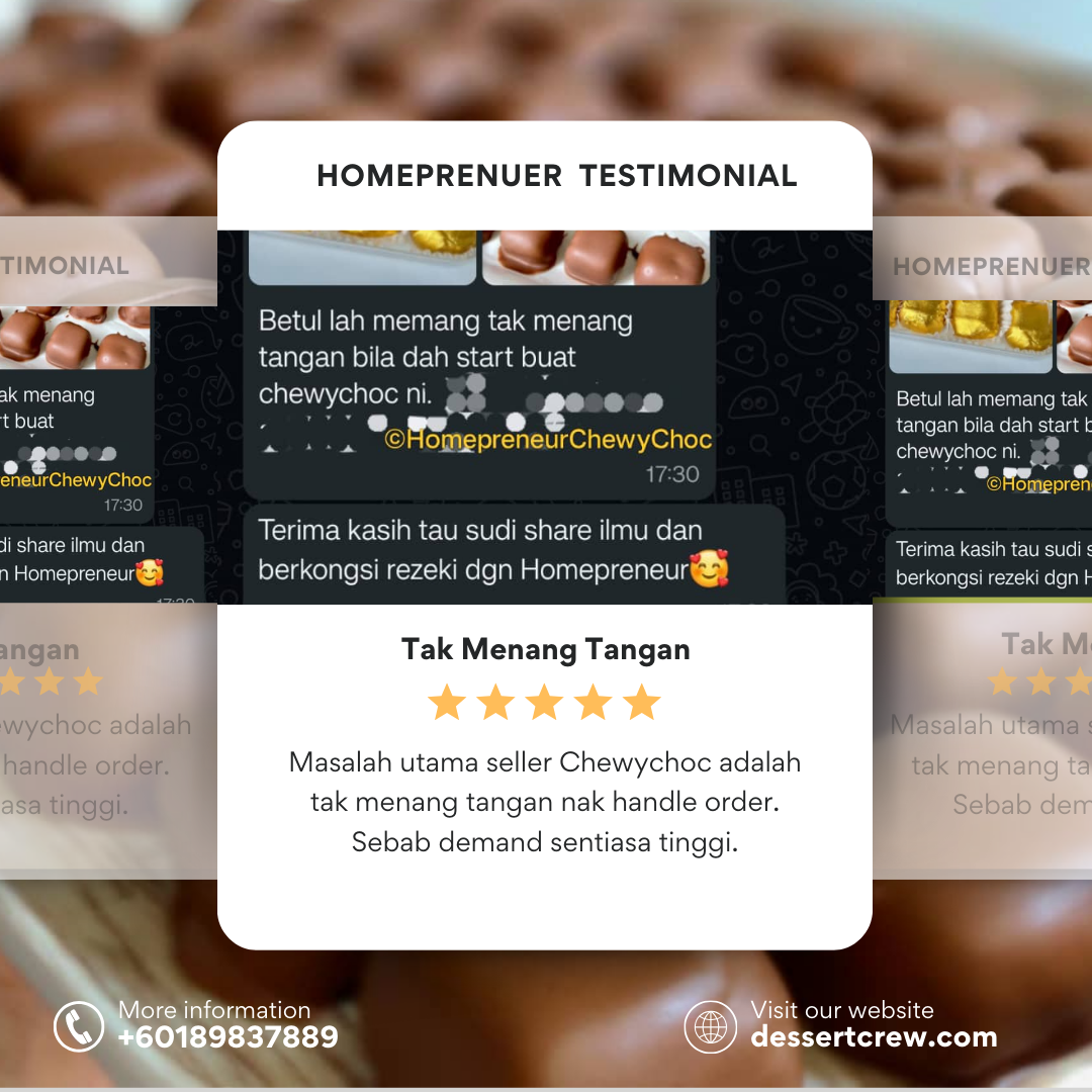 Program Homepreneur ChewyChoc ini boleh ditutup pada bila-bila masa sahaja. Jangan lepaskan peluang untuk daftar. Kami dan komuniti Homepreneur ChewyChoc akan bimbing anda dari A-Z.